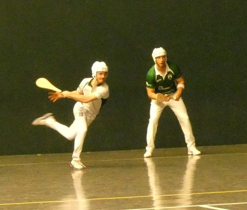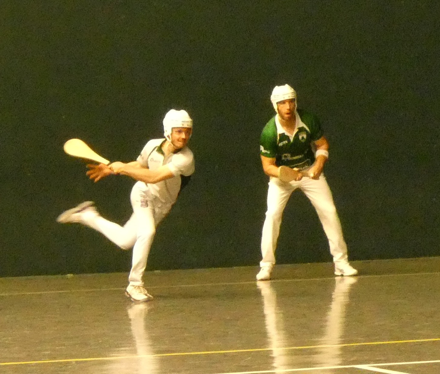 Yon Gavillet aura alterné très bonnes actions et moins bonnes ; parfait en début de première manche, il sera mis à la faute en défense sur des pelotes difficiles à capter. Il se sera montré à son avantage sur quelques contres et attaques en deux-murs. Benoît Châtellier, de l’équipe de France dans la spécialité, aura impressionné lui aussi par sa force de frappe, trajectoires basses, piquées gauche à gauche. Il aura assuré avec une belle constance, relevant à merveille les pelotes de Lucas Hourçou ; peut-être aurait-il dû varier ses longueurs et hauteurs de pelote pour ne pas mettre Hourçou sur orbite.