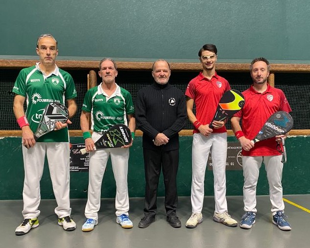 Pau 1 (Jauréguiberry et Inchaurraga) bat Lescar 4 (Saint Martin et Birou) 2 à 1 (8-20, 20-16, 10-7).