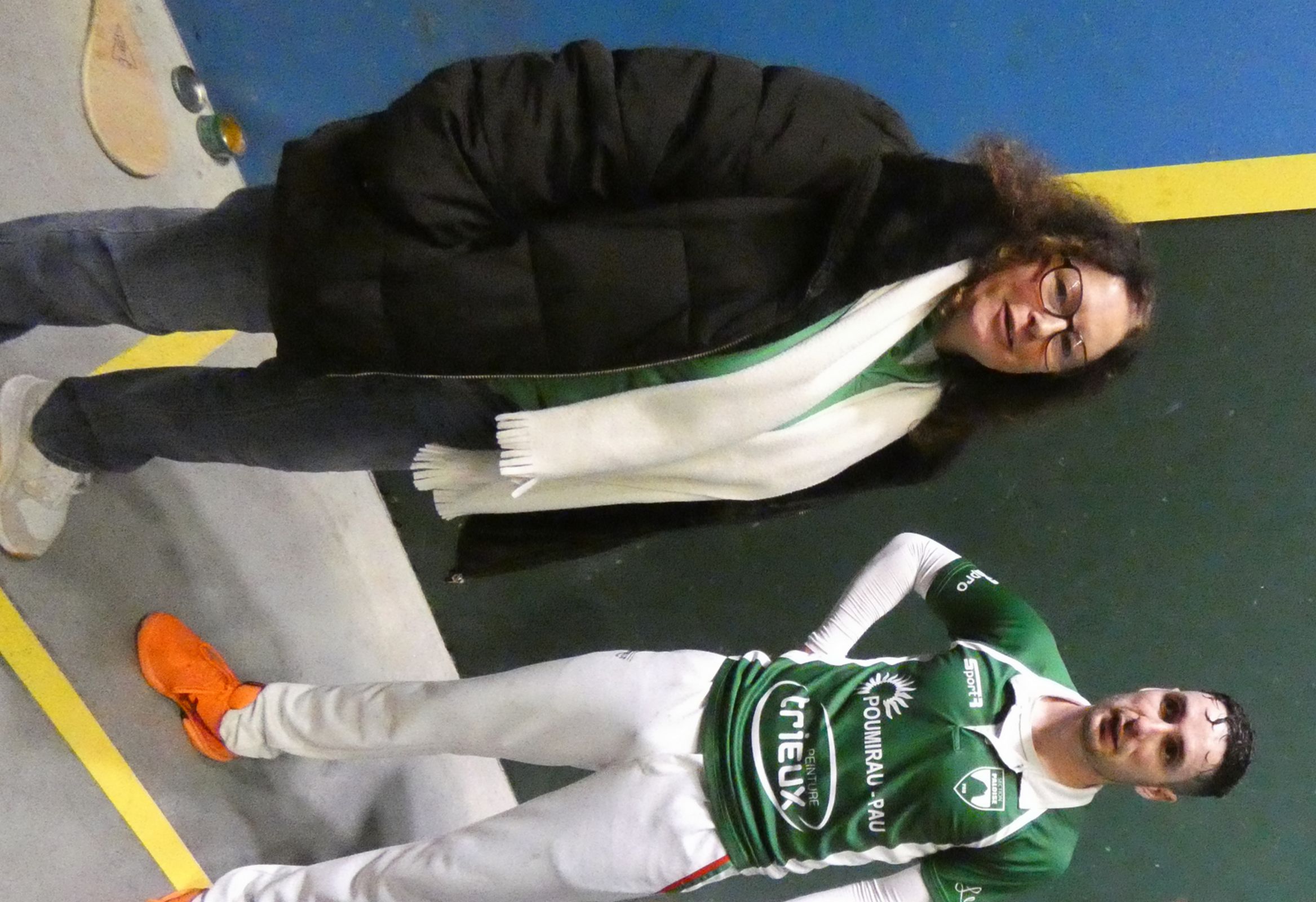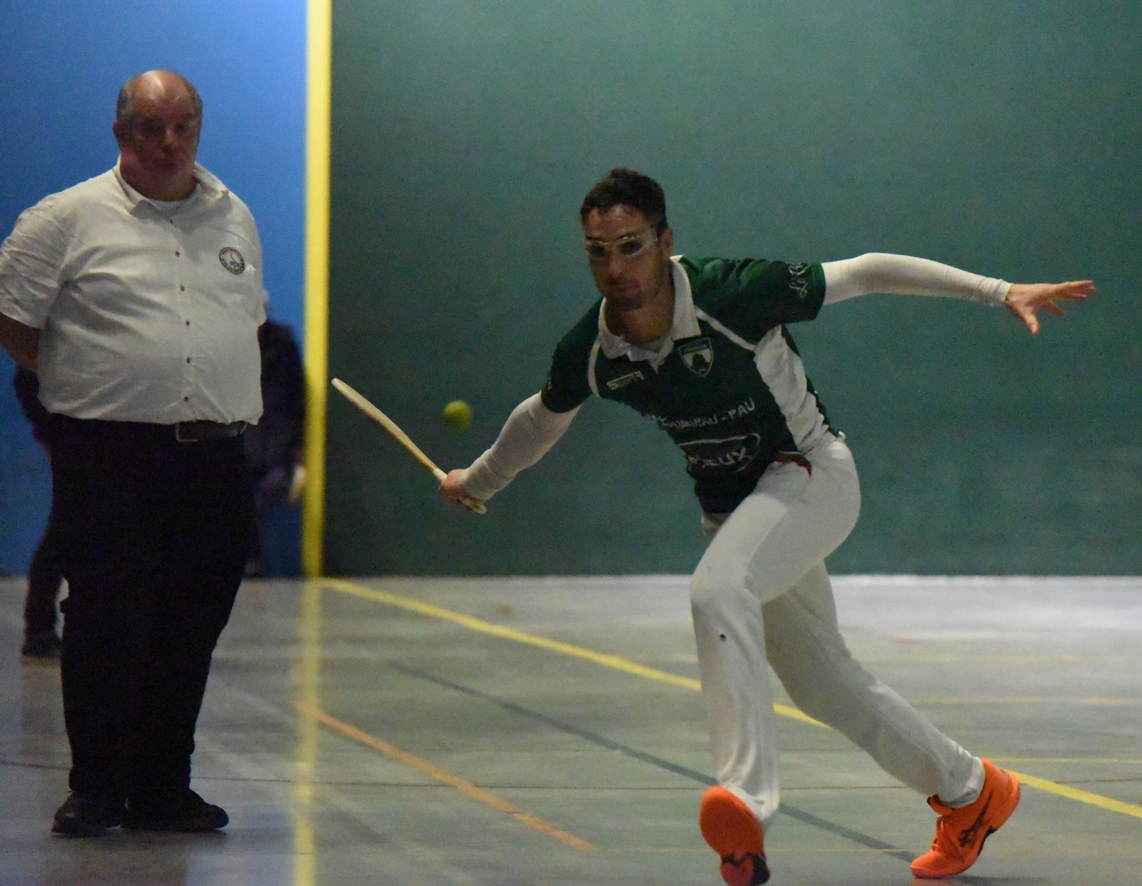 Ce n’est toutefois pas pour oublier ses malheurs que Nicolas Echeverria s’est offert, de nouveau, un week-end qu’on ne sait plus trop qualifier tant il paraît d’une simplicité enfantine à ce marathonien des canchas. Il alla donc de Boé à Pau récupérer avant dès 14 heures dimanche retrouver le trinquet du complexe palois. Là, avec son Romain Escudéro il était invité à étrenner son titre de champion du Béarn à l’occasion de la première journée du championnat de France. On leur proposait du lourd avec une confrontation palo-paloise face à Laberdesque-Mendivé, mais ça n’effrayait pas le moins du monde le duo d’outsiders qui, faisant une course de traînard, comme disent les cyclistes, se pointèrent dans le sprint final final pour coiffer leur rival que l’on imagine fort marri …