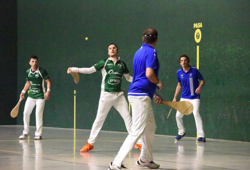 Et pour le dessert ? Escudero-Echeverria s’offraient un petit voyage jusqu’à Souraïde localité qui n’est tout de même pas la porte à côté puisque depuis Pau il en coûte tout de même de parcourir 125 kilomètres. A 18h 30 ils défiaient sur leur cancha les solides basques qui n’avaient cédé qu’en quart de finale face aux futurs champions du Pays Basque ! Ils n’ont pas gagné mais n’en furent pas très loin puisque battus au finish 36-40 ! C’était enfin fini du week-end pelote, rassurez-vous…