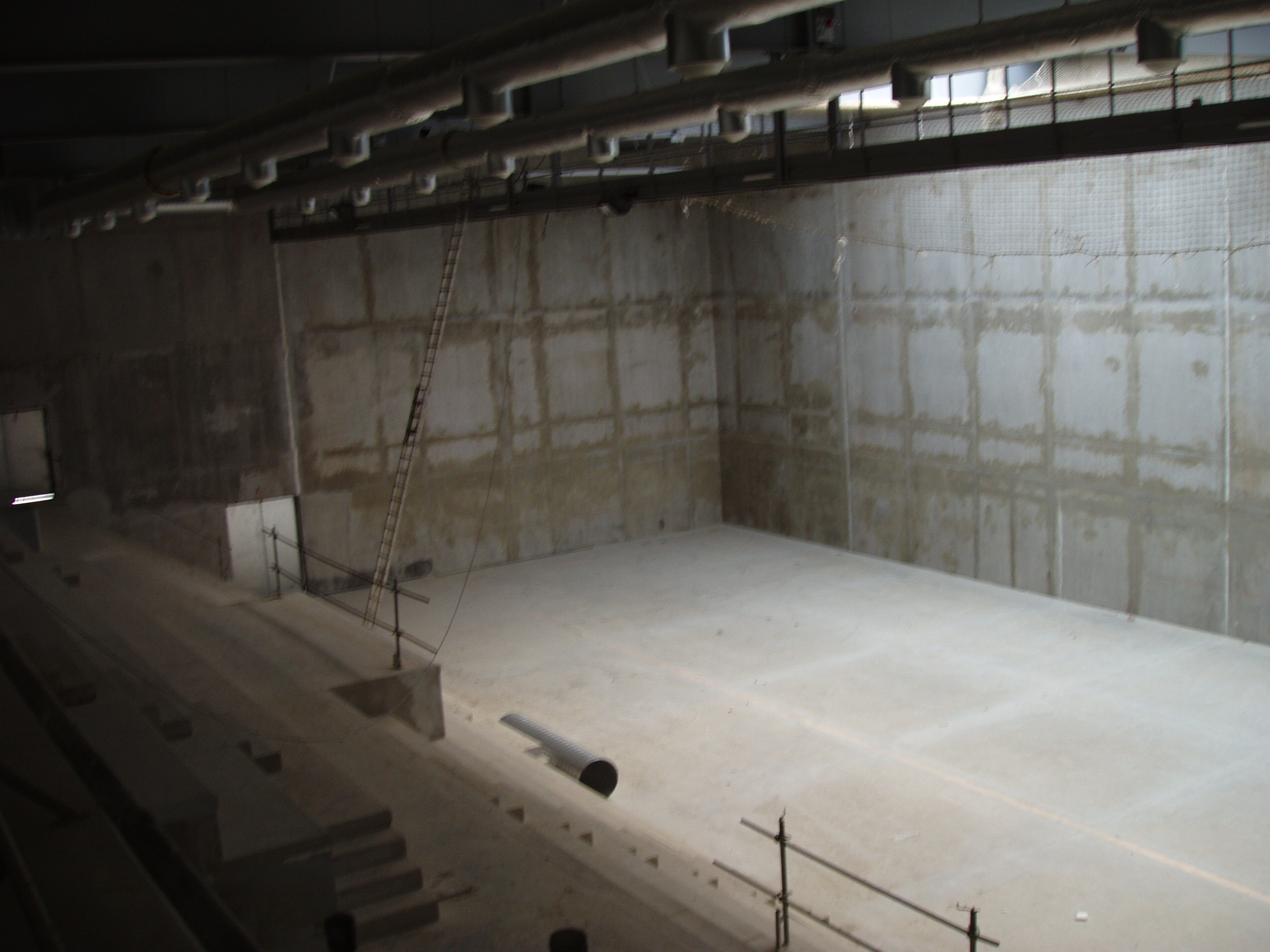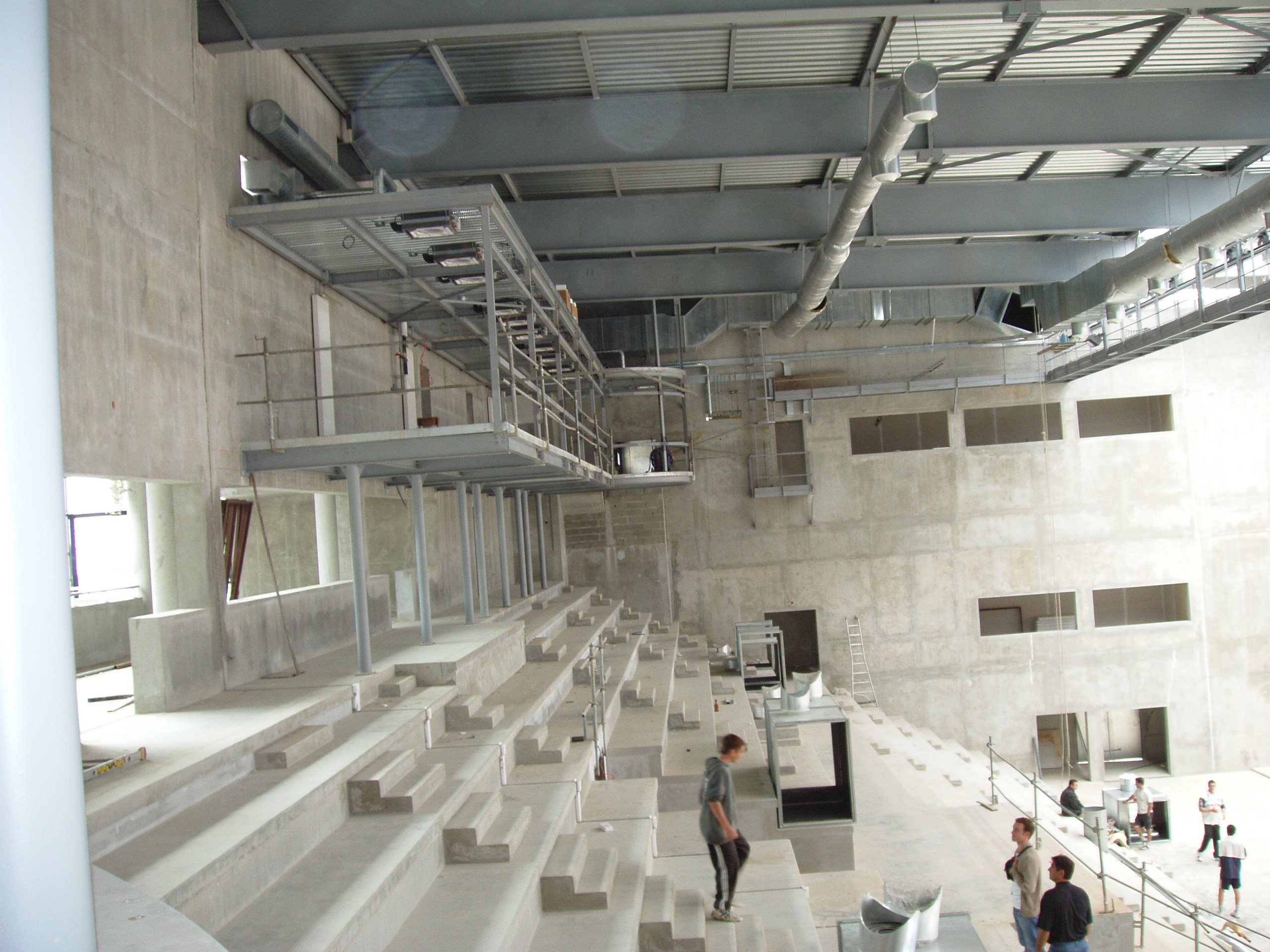 L’avancée des travaux dans les différentes structures du complexe où le mur de frappe du jaï alaï a été monté le premier.