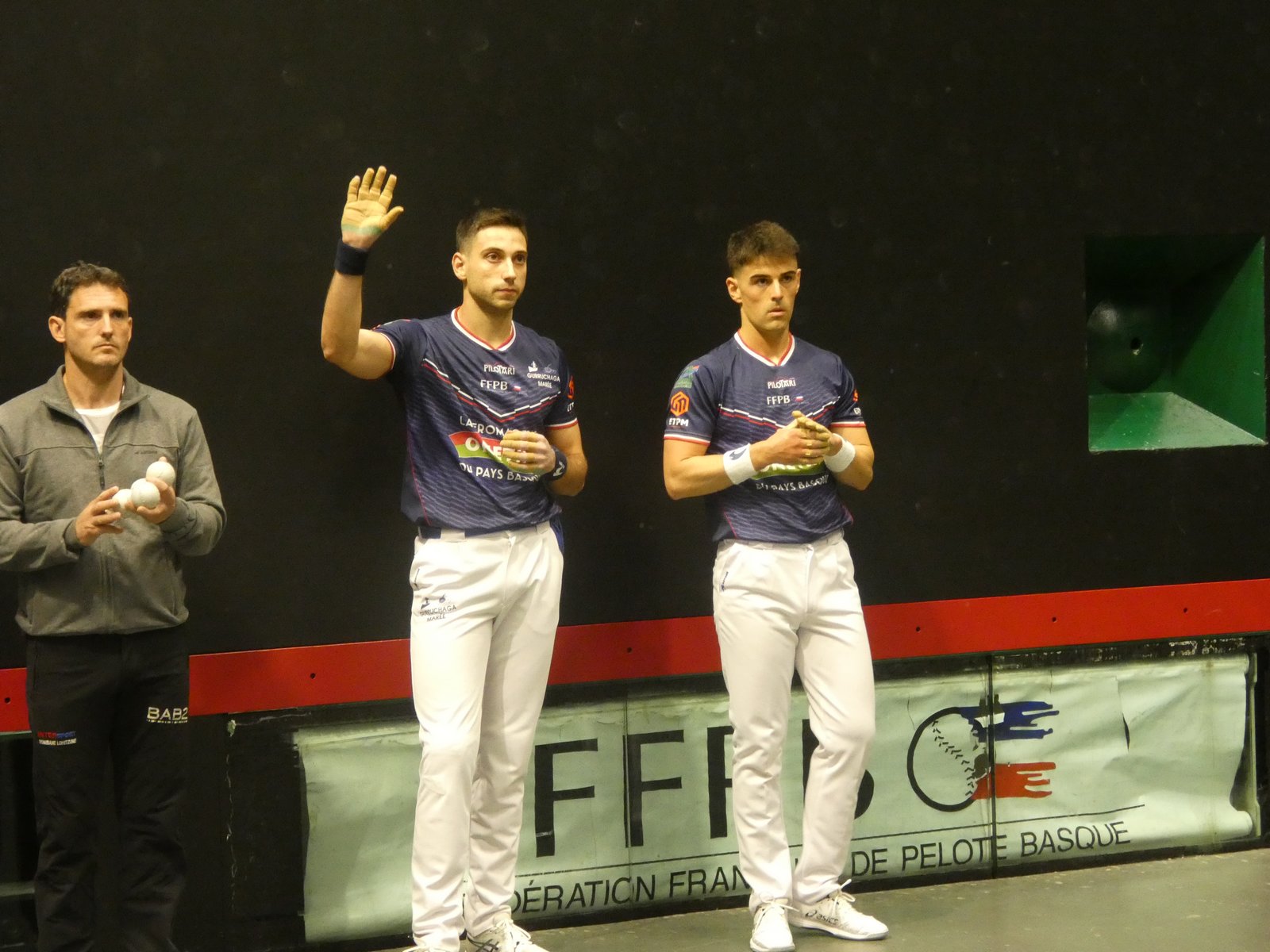 Iker Espinal, le joueur de Pampelune, est encore en mesure de conserver le titre national par équipes conquis l’an dernier. Associé cette année à Baptiste Ducassou, il s’est qualifié vendredi soir à Anglet pour la finale du 26 avril prochain et le duo partira avec les faveurs du pronostic, en fonction de la forme actuelle de son arrière qui pourrait bien réussir le doublé, après son succès dans le tête à tête. Son partenaire de la finale victorieuse, Luis Sanchez, basque espagnol de Pampelune lui aussi, en revanche, n’a pas le moindre chance de viser le triplé dans la même spécialité du deux contre deux. Et pour cause, il a été battu au sortir de sa poule par le point avérage et n’a donc pas eu accès au dernier carré…