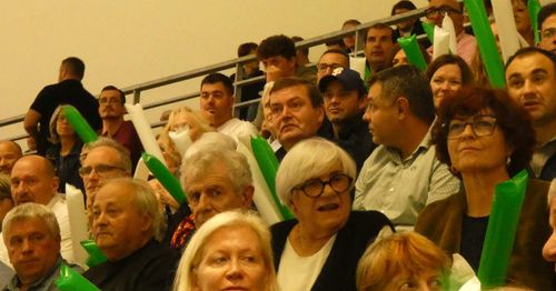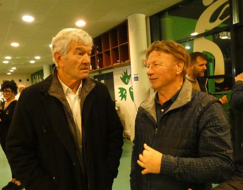 Heureux encore les dirigeants palois derrière leur président Gérard Pierrou! Leur soirée fut un succès populaire incontestable, le président avait réuni plus de 180 personnes autour des sociétés partenaires au restaurant, quant aux guichets tous les billets avaient trouvé preneur, ce qui fait qu'une fois le bilan officialisé la Section pourrait bien avoir vécu une soirée record au niveau des entrées. Et c'est vrai que pris en photo d'en haut, d'en bas, de face, le jaï alaï était plein... Et joueur puisque la Section avait déposé sur chaque siège, des tam tam "vert et blanc" pour qu'une fois gonflés, ils fassent mointer le niveau sonore de l'ambiance, et sur certains points elle est montée très haut l'ambiance, jusque chez les officiels où Christian Loustaudine et madame dirigeaient la manoeuvre.