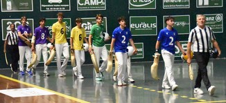 La présentation des deux équipes pros, avec le sourire retrouvé de Lékérika et pour cause il rejoue avec le maître Aritz Erkiaga. La brochette avec Ion Tambourindéguy et Imanol Lopez est de niveau mondial, d'ailleurs Erkiaga et Lopez sont les champions du monde en titre de la spécialité (photo 3).