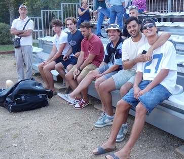 Si les joueurs ne se font pas le moindre cadeau sur la cancha, il sont très proches avant et après les parties... La démonstration par l'image à Arcachon où ils suivent le lever de rideau Hossegor-Arcachon, tous ensemble et dans la bonne humeur, même si Jérôme Portet n'a pas réussi à "tordre le cou" à Emeric Libois qui le lui aura tordu davantage. Au fond, Pascal Tarrozzi, bénévole au club, joueur de punta en loisir et chauffeur pour l'occasion puisque les deux habituels étaient retenus, Jean Pierre Caparrus à la buvette, Philippe Othaburru à l'animation. Examen de passage fort bien réussi, Pascal et merci de la part des joueurs (Photo 7).