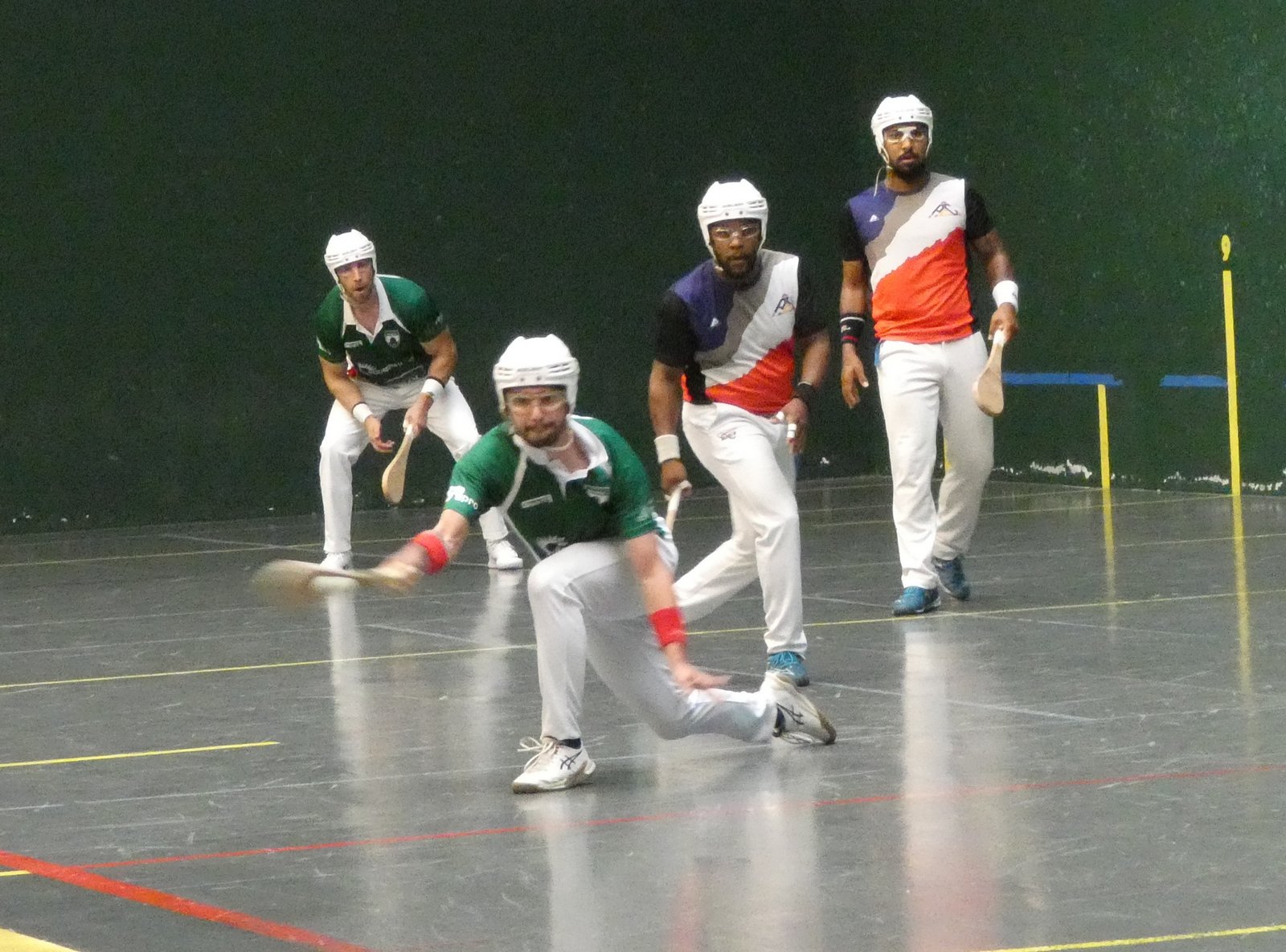 Présent sur le bord de la cancha de Lalaubère mais en civil et le cheveu déjà sec, Quentin Mariaud était venu jeter un œil sur la partie de Nationale B qui s’était glissée dans le programme des quarts de finale, comme si quatre parties ne suffisaient pas à meubler un après midi, surtout quand on connaît la ponctualité de la pelote… Bref le jeune international palois et son équipier Kevin Pérez avaient un peu plus tôt et à Lescar, valider leur billet pour le dernier carré en éliminant St Martin de Seignanx en deux manches (15-14 et 15-7), le score de la première manche indiquant là encore combien en quart de finale, le favori a du mal à se libérer, combien l’importance de l’enjeu le paralyse. Or eux aussi, à l’image de Gavillet et Chatelier, avaient effectué un parcours de classement de toute beauté… Par contre dès que Pérez retrouva son vrai niveau de jeu alors les landais furent très nettement dominés.